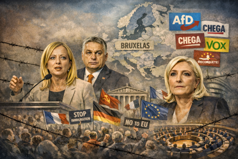 O fim do bloco soviético, entre 1989 e 1991, fechou uma era para abrir outra. No Leste e no Centro europeu, transições econômicas difíceis e recomposições nacionais criaram espaço para nacionalismos duros e políticas de inimigos internos. No Oeste, a integração europeia e a sensação de perda de controle alimentaram discursos soberanistas, com “Bruxelas” como abreviação das instituições da União Europeia, apresentadas como uma elite distante, embora muitas decisões passassem também pelos governos nacionais no Conselho. Essa fase consolidou um mecanismo que explicou por que a extrema-direita cresceu mesmo quando não ganhou as eleições: ela se deu pelo contágio. Partidos tradicionais endureceram a linguagem e as políticas de imigração e segurança para não perder eleitores, e com isso legitimaram a moldura mental da extrema-direita. O eleitor aparentemente tendeu a preferir o original à cópia, e a extrema-direita passou a vencer também redefinindo o que se discutia e como se discutia.